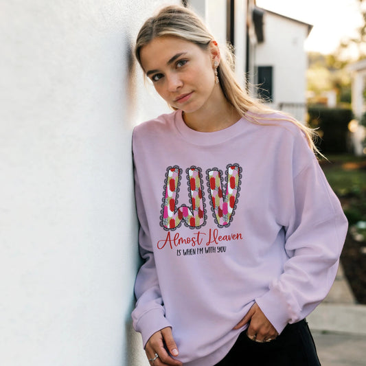 West Virginia Valentines Crewneck Sweatshirt | WV State Shirt | Pink Red Brushstroke WV Shirt | Girly Southern Aesthetic Top